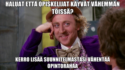 Uudistuspaine liittyy keskeisesti yleisiin tavoitteisiin opintoaikojen lyhentämisestä ja työurien pidentämisestä. On kestämätöntä, että työmarkkinajärjestöjen kyvyttömyys työuraratkaisuihin kaadetaan opiskelijoiden niskaan. On moneen otteeseen todistettu fakta, että opiskelijoiden työurat alkavat jo opiskeluaikana ja että suomalaiset maisterit työllistyvät koulutustaan vastaaviin töihin varsin varhain.